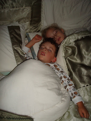 (My young ‘uns were plum wore out from The Pumkintown Fall Festival. Ain’t they sweet, all snuggled up together at their Nana & Poppy’s house later that night?)