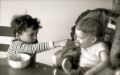 Cupcake sidled right up to big brother, who eagerly and cheerfully fed him from his own bowl of oatmeal. And after they shared that bowl together, I fixed them another…and another.