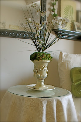 That was a faux-painted-brown garage sale find in a former life. Now a lovely cream.