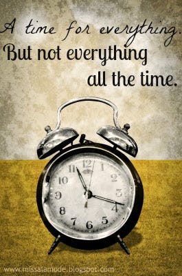A Time for Everything but Not Everything All the Time. Part 1.