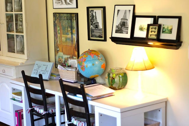Right now you're looking around at all you have to do. It's never-ending. The dishes, the laundry, the meals, the math, the lesson plans, the child-rearing, the grading, the piano practice. Guess what? You don't have to do all of this. You shouldn't do all of this. Honey, homeschooling is not part and parcel of motherhood; it is above and beyond the call of motherhood. It is extra. Do you hear me? It is a full-time job. And here's the thing: you get paid for jobs. Read this post on "paying yourself." {It explains the whole thing.} No, I'm not necessarily talking about paying yourself a salary. I'm talking about paying yourself with currency that is meaningful to you and that gives you a break, currency that may clean your house and save your sanity.
