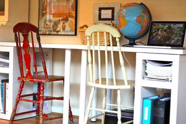 Those were some crazy days. Still adjusting to life outside the work-force, I had three young children and did school with the oldest two while my hard-working husband taught every day and three nights a week. The littlest child remained attached to my hip or to the floor, likely adhered to the hardwoods by a rogue cup of spilled apple juice that had dripped through the cracks of our kitchen table / school desk.