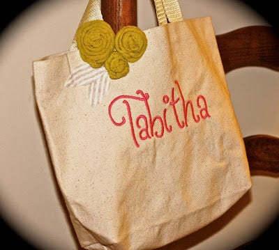 I attached a cluster of these rolled petite fleurs to tiny totes for all of my new nieces.