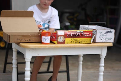 No, we don't eat rocks. But we are big fans of those cheese pizzas from Costco. A bonus? Recycled boxes can be used for rock sale displays and other kid-inspired enterprises.