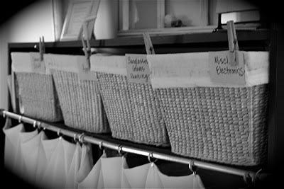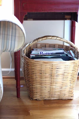 Baskets are miracle-workers in my house. I realized I have them everywhere. They hide junky stuff like cords, batteries, and flashlights.