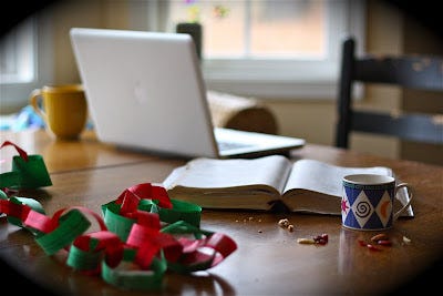 As I type this, there are crumbs scattered across the table, dirty dishes littering the counter, and nary a Christmas decoration in sight, save for the paper advent chains my children made in church last night.