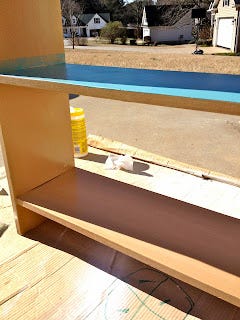 A word to the wise: Remove your lovely succulents sitting precariously on the top of the bookcase before you hammer away at your shelves.