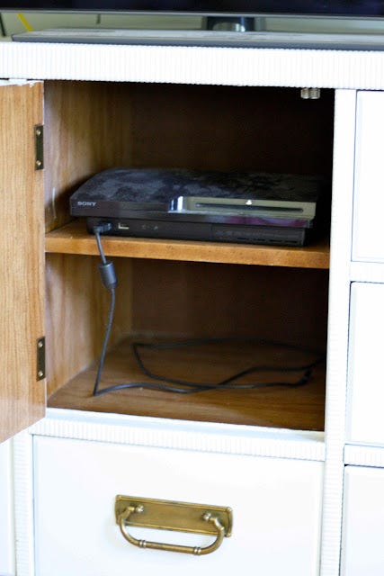 Also? My boys figured out that they can apparently still work the PS3 via remote with the middle door closed. Good thing my husband realized what they were up to or this post would have been titled, "How a DIY Project Burned Down My House." It was 100 degrees in there.