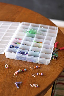 I thought to myself how those ideas just wouldn't work at all, how the fabric would need to be double-sided for the flower pins and the three-strand earrings would be too hard to make and probably look tacky.