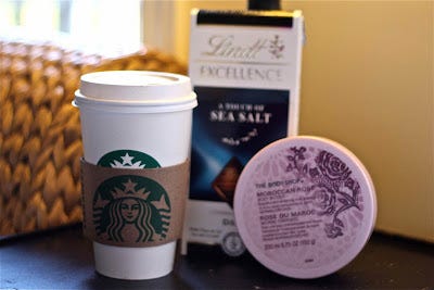 current indulgence: Body Shop's Morrocan Rose Body Butter. I want to lick my arms.
