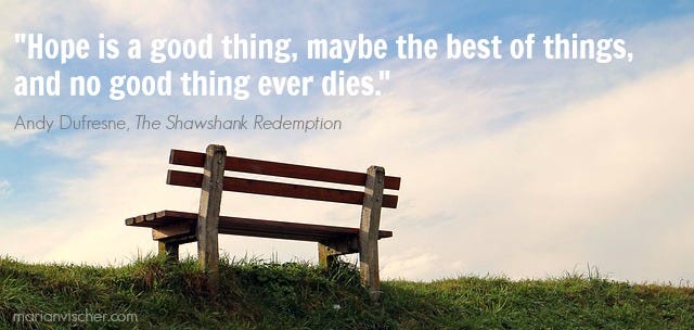 I believe hope is the fuel of perseverance. And that perseverance is the bedrock of story. Just ask Harry Potter or Bilbo Baggins or Lucy Pevensie. Ask Andy Dufresne and “Red.” Ask Jesus.