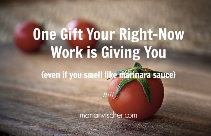 So what’s the one gift your right-now work is giving you? A story. A story in which you, the main character, perseveres and comes out changed on the other side.