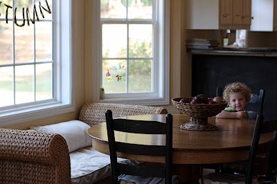 Our kitchen table has worked mostly fine until this year, but with Blondie's increased work load, I begrudgingly shuffled books and papers and crayons from the table to the counter multiple times a day. We had to clear the school junk away so that we could eat breakfast, lunch, and sometimes dinner at this all-purpose table.