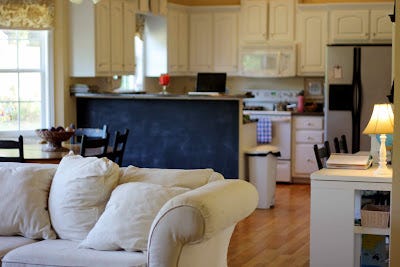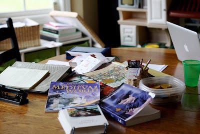And if we didn't? Someone invariably spilled juice or smeared peanut butter onto somebody's math book and I would get mad because they were mad and papers were wet and I blamed all the world's problems on my lack of a homeschool room. Because I'm so rational and all.