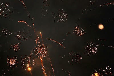 Watching the family fireworks show.