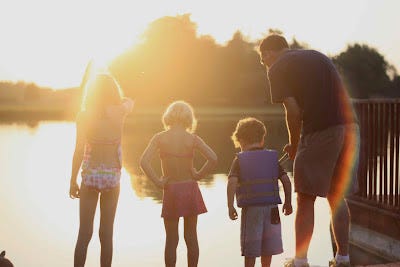 Watching my children splash their toes in the same lake where my husband splashed as a little boy.