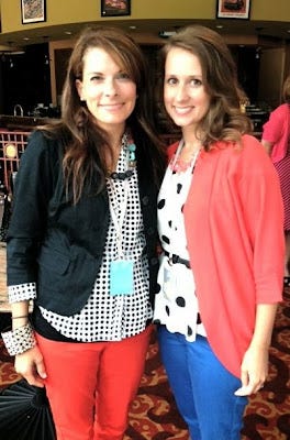This is us at She Speaks. Polka dot top, jacket, beaded necklace,