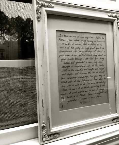 One day during that same season I sat in my bed, exhausted and pensive, while the kids were in school. With my daughter's watercolors I sketched a tree and penciled the words from Ephesians throughout its branches. To be honest, it's a terrible piece of art, completely amateur in every way, but it's above my desk anyway. I don't often consider it because I see it every day.