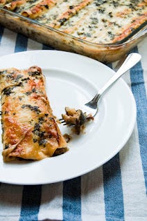 Double pans of homemade enchiladas. Two different varieties! Chicken in one pan and black bean / zucchini in another. With a green chile cream sauce. All five of us stuffed ourselves on these enchiladas.
