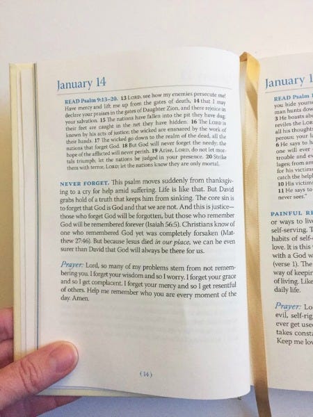 Don’t read the notes from the author. Don’t read the prayer. Just focus on the Scripture. Read through it once or twice.